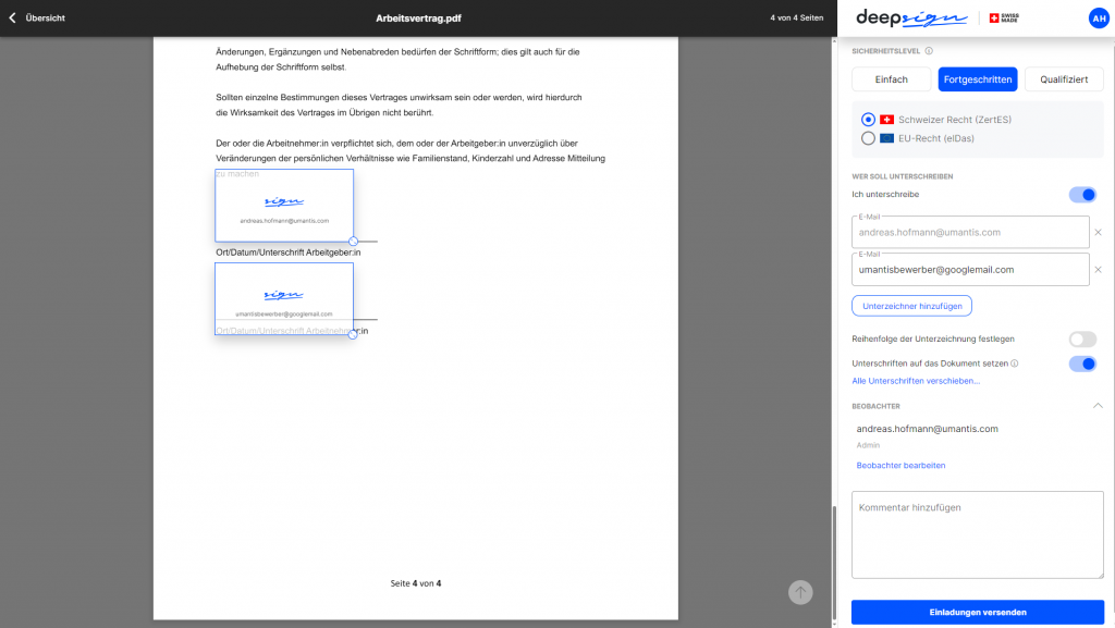 Unterzeichnen und versendenUnterzeichnen und versenden