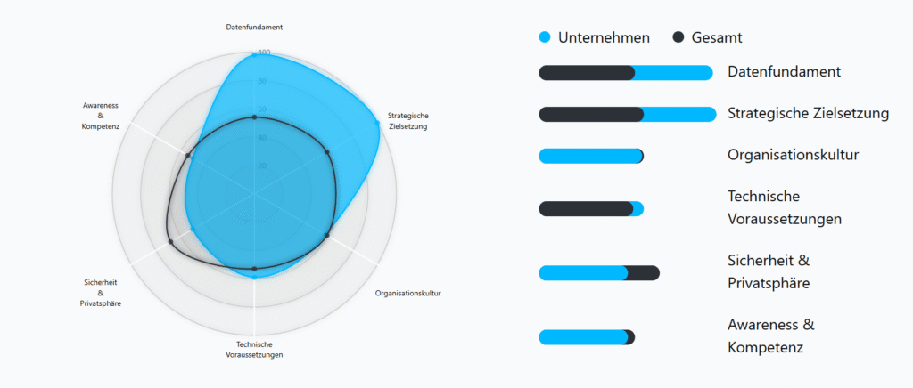 Abacus Umantis also took part in the AI maturity analysis. With an overall score of 65/100 points, the company is well above the Swiss average. It scored particularly highly: