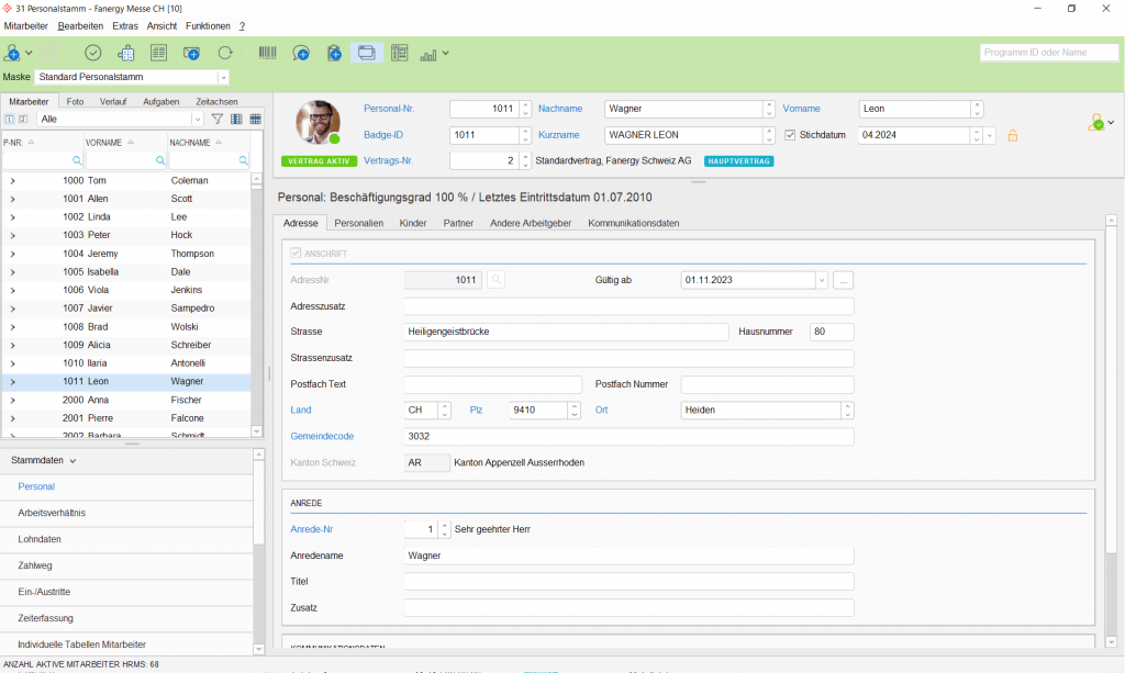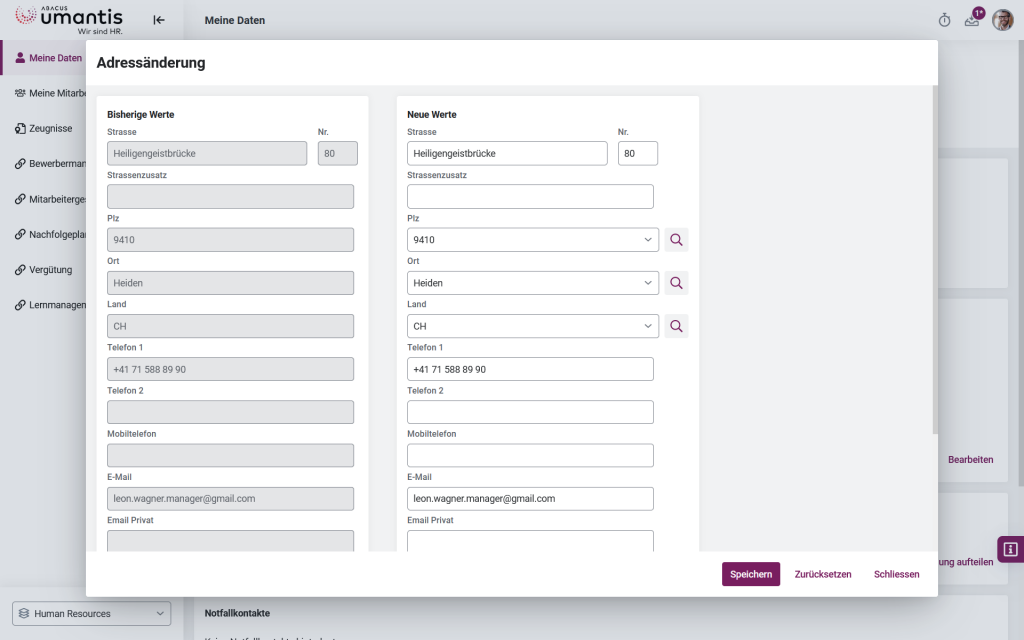 All employees are digitally recorded, updated and maintained in the Umantis HR-Core HR master data. This includes informative details about the employees as well as necessary data such as name, address, entries and exits, degree of employment or the agreed salary values. Freely configurable self-service functions allow employees to do some of this work themselves.