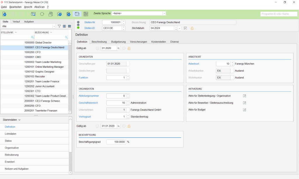 All of your company's jobs are digitally recorded and managed in the Umantis HR-Core job master. This includes informative details about the job and occupancy as well as the agreed job wage data for planning and budgeting purposes.