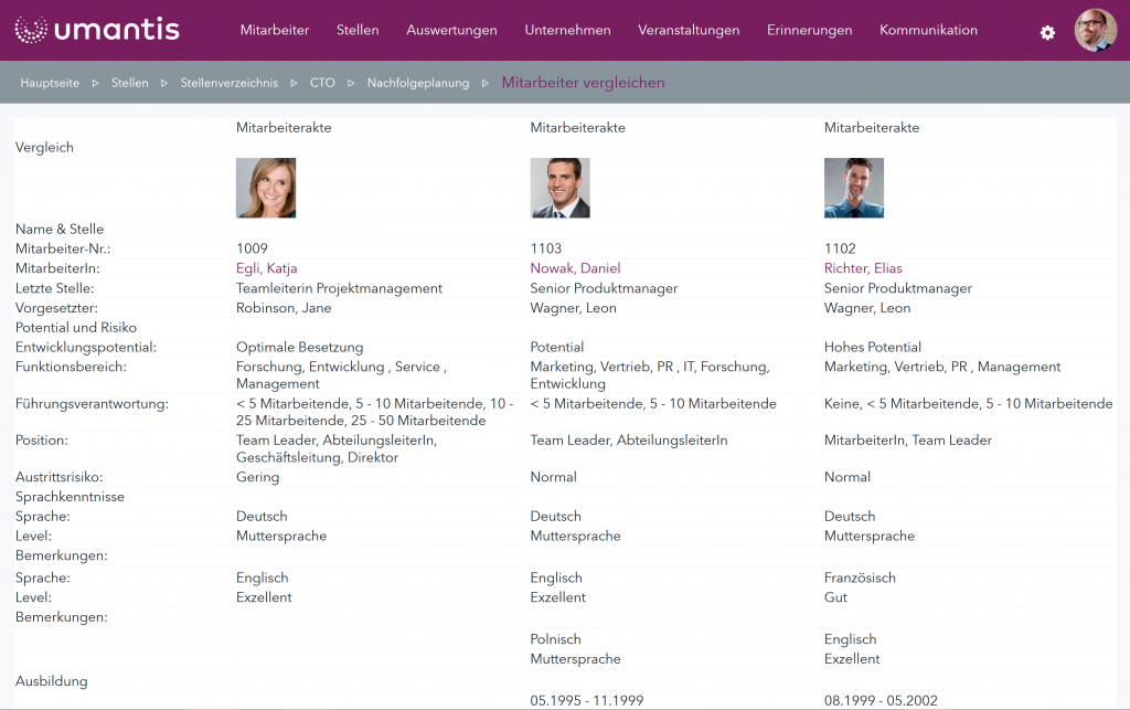 - Compare high-potential employees and key figures with just a few clicks