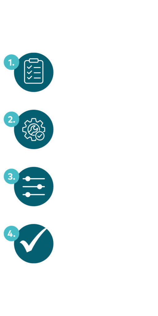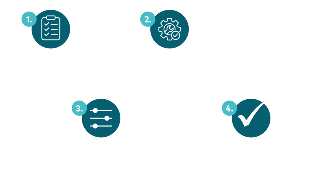 Die vorkonfigurierte Umantis HR-Suite SmartKMU ermöglicht es uns, Ihre neue HR-Software in nur 3 Wochen bei Ihnen zu implementieren. Die Einführung erfolgt in vier klaren und zielgerichteten Schritten: