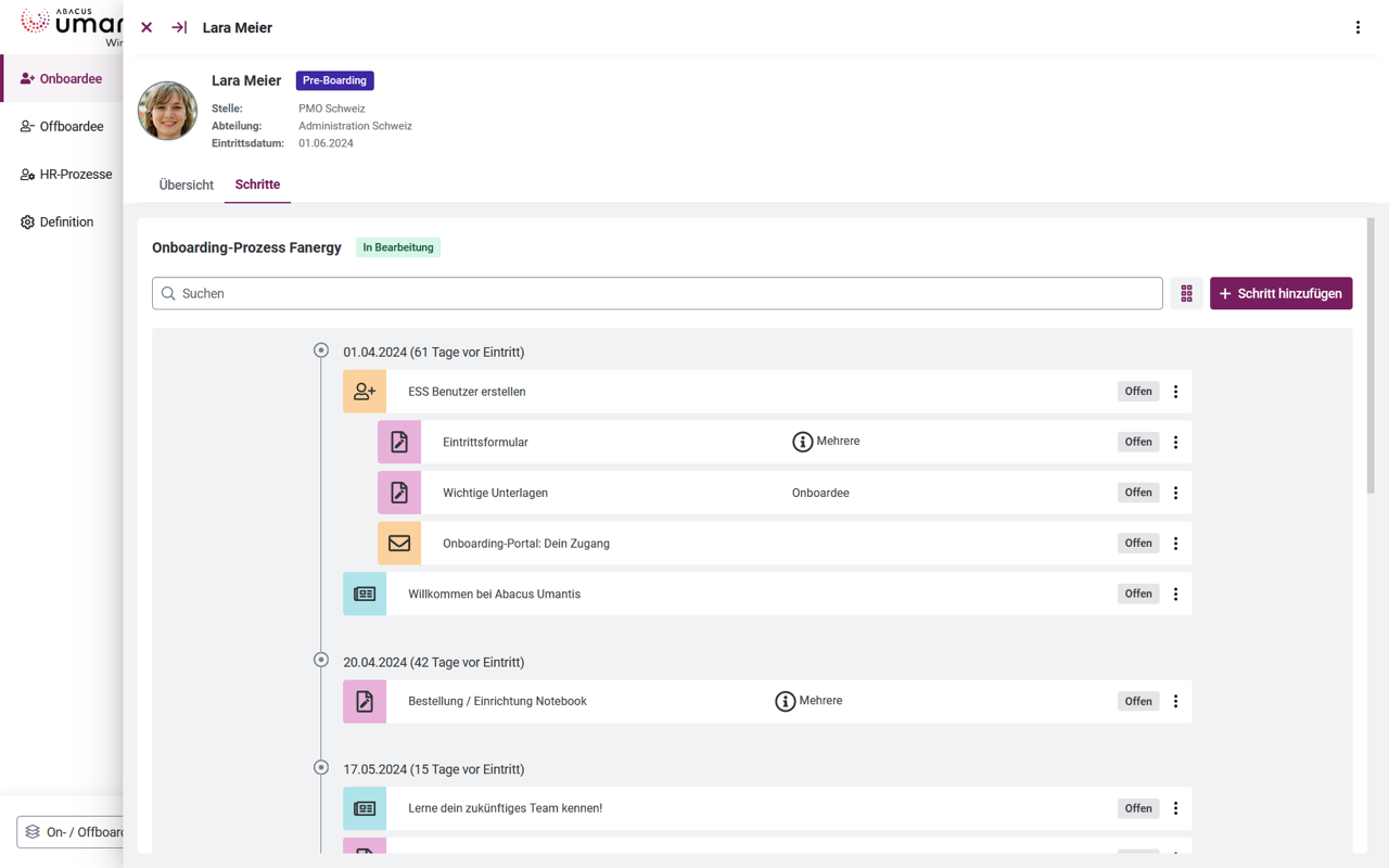 - Ablauf On- oder Offboardings für verschiedene Stellenprofile, Teams und Standorte passend gestalten