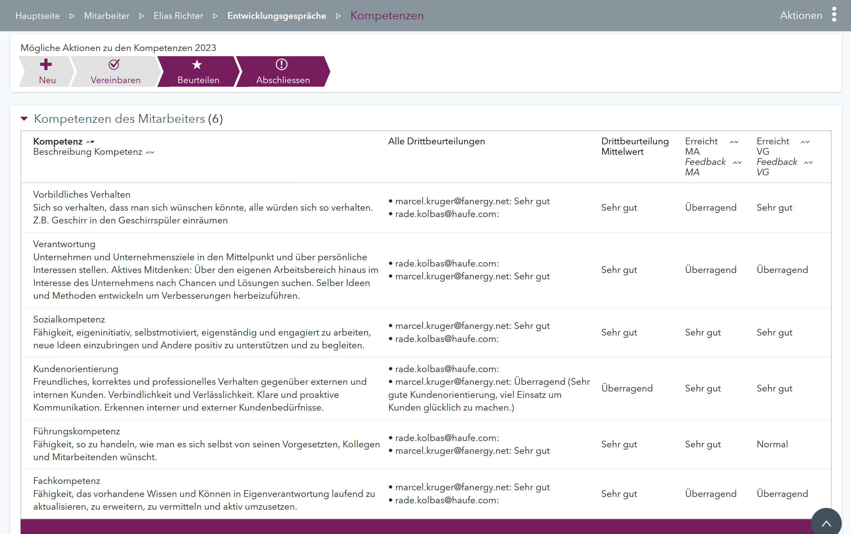 - Standardisierung für die Beurteilungs- und Entwicklungsgespräche