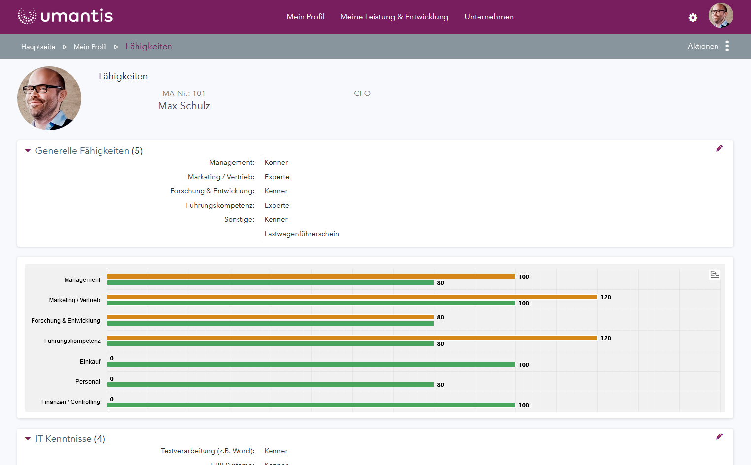 - Vorhandene und geforderte Fähigkeiten auf einen Blick