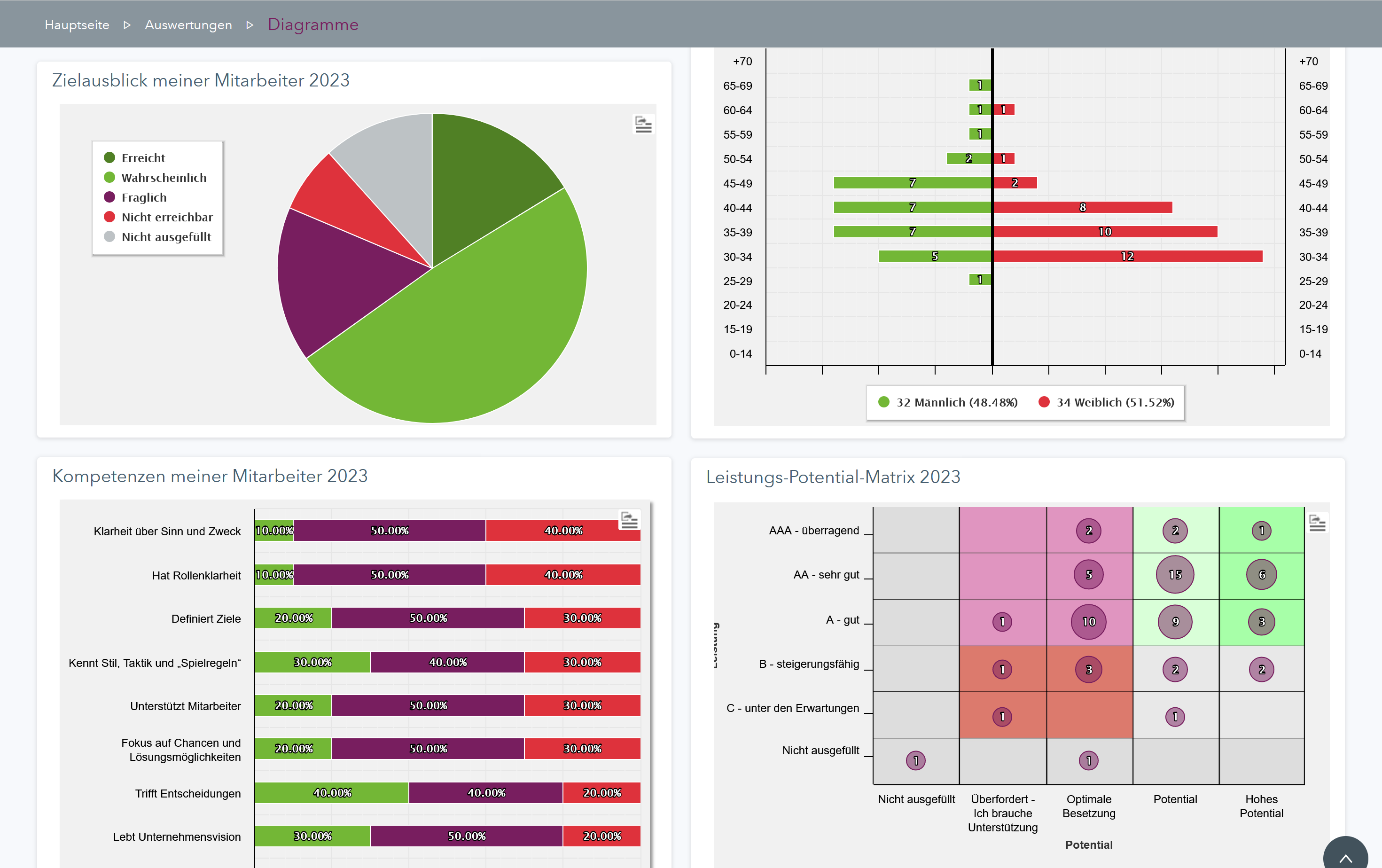 - Komplette Übersicht hinsichtlich Zielerreichung der Mitarbeiter