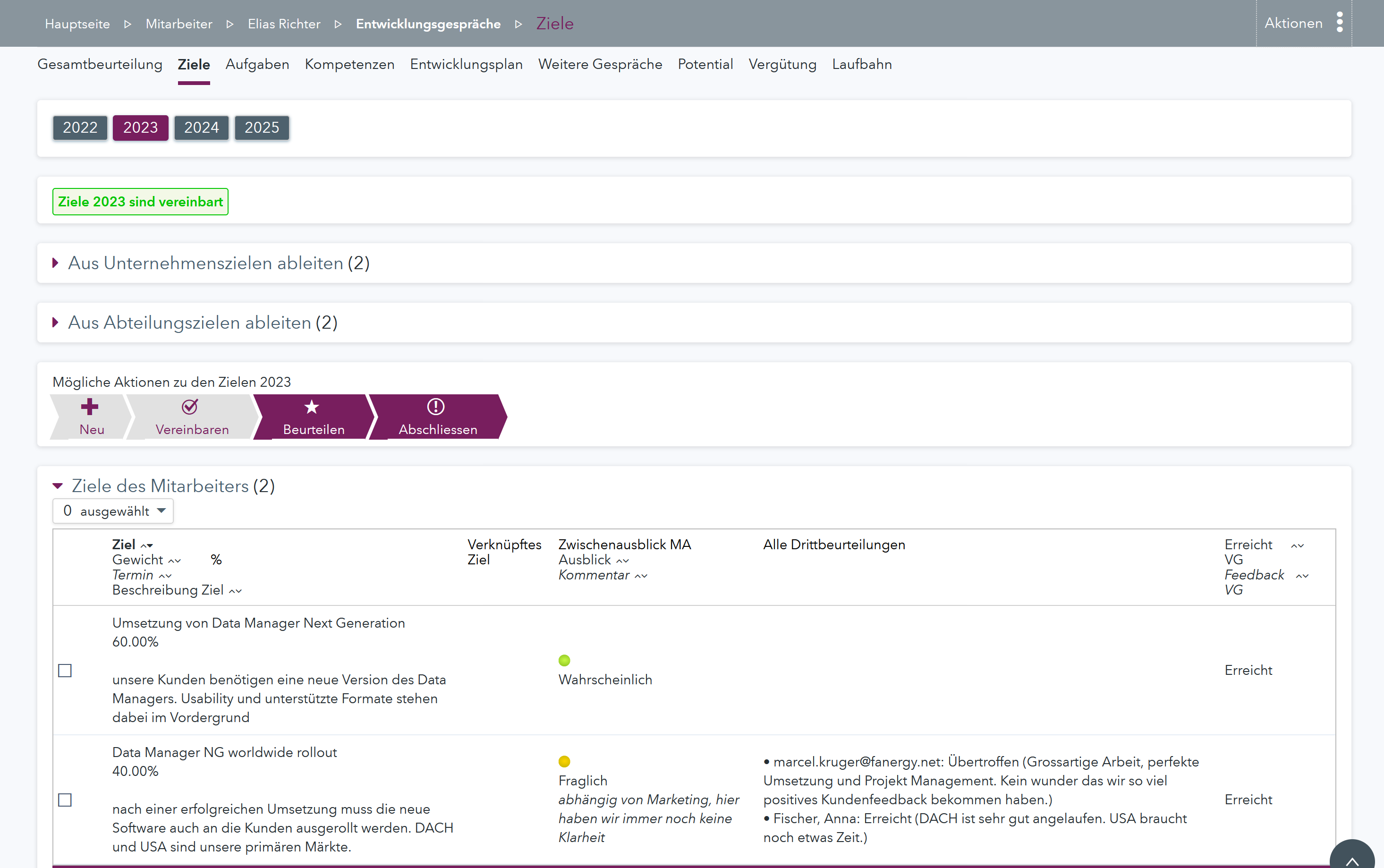 - Ziele jederzeit erfassen, bestätigen und bewerten